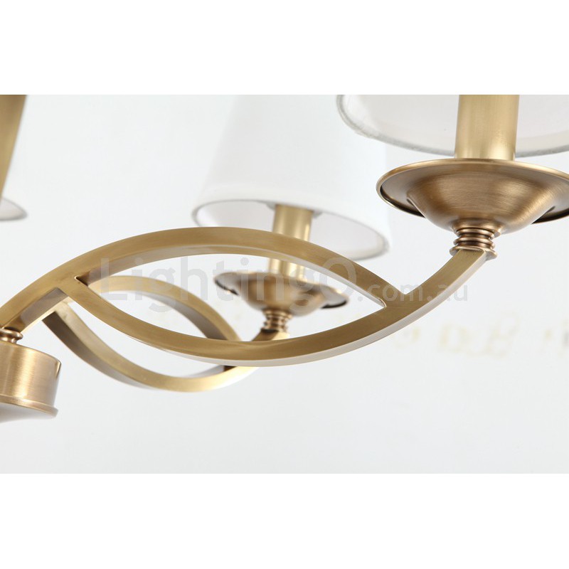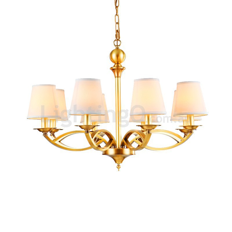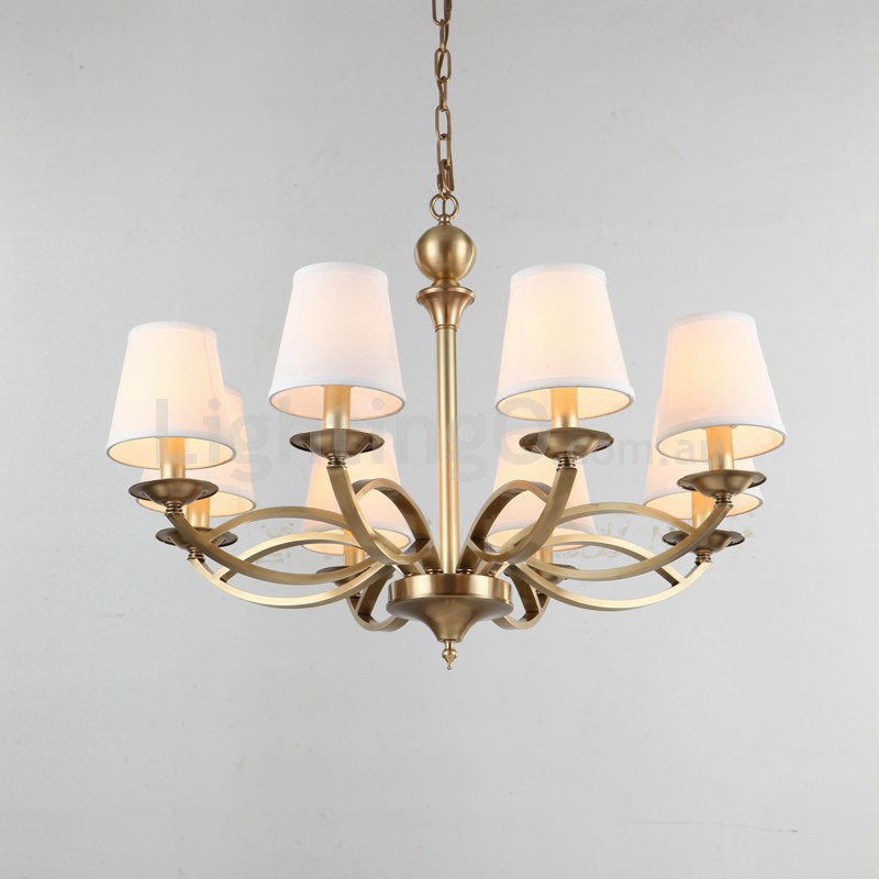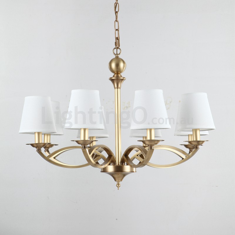 Fine Brass 8 Light Chandelier with Fabric Shades