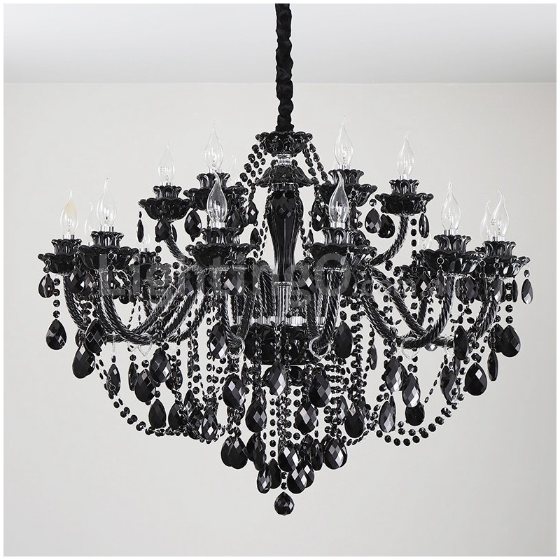 • 18 Light (12+6) 2 Tiers Black Candle Style Crystal Chandelier